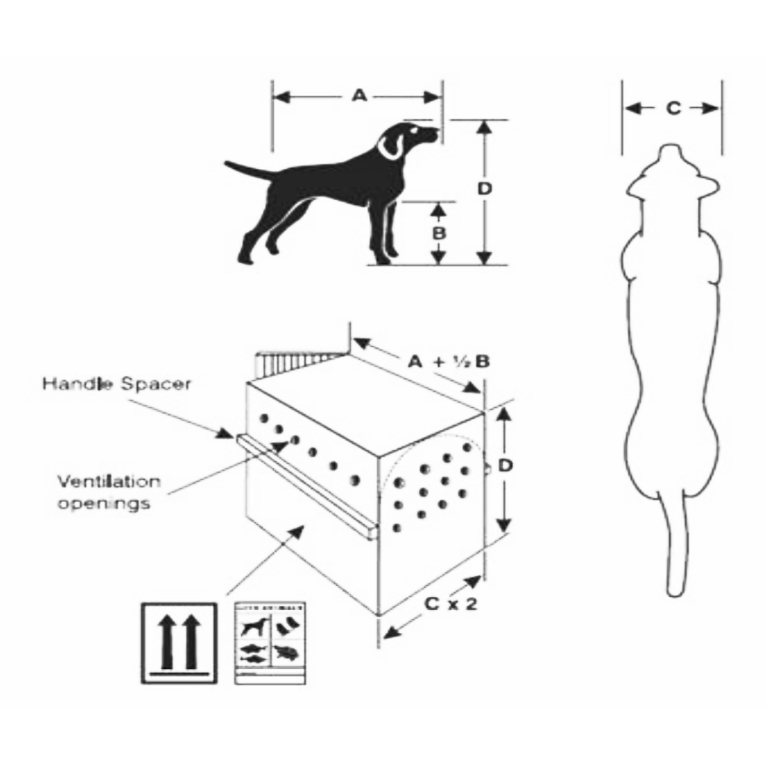 It is important we use the right sized container for your animal. Airlines use the following indications to ensure the animal has enough space to turn about normally while standing, to stand and sit erect, and to lie in a natural position.